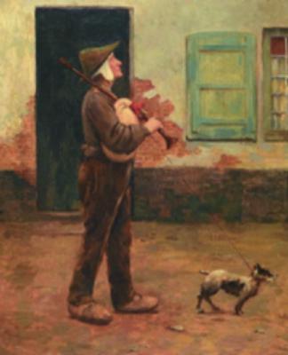 My thoughts are that this latest discovered work by Dilly is older. The work Au Pays Flamand, l'Aveugle is a more sharply finished painting. The setting may be vague, but the characters and musical instrument are rendered in great detail. He has already used most of the elements in earlier paintings. As the work was destined to participate in the Salon de Paris in 1909 as part of his Au Pays Flamand series, he enriched the blind man's instrument with a second drone on the shoulder. No doubt he had seen this in old Flemish masters such as Jordaens and Teniers and thus wanted to make the instrument look more Flemish. If this is correct, then we can assume, judging from the dimensions and structural details of the bagpipe in the oldest painting, that the blind man was actually playing on a muzelzak. That on this work we also suspect a bellows instead of a mouth-blown instrument need not be a problem. Indeed, the blind man may have been forced, say, by defective teeth, to adjust his muzelzak. It was, after all, about his livelihood.