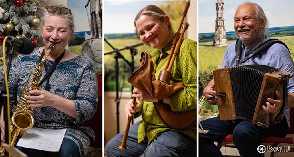 Heather White plays saxophone and whistle. She also plays with Mouse and Trousers, and previously with Monty’s Maggot and The Old Chapel Band, as well as being a resident musician with Black Fox Productions.