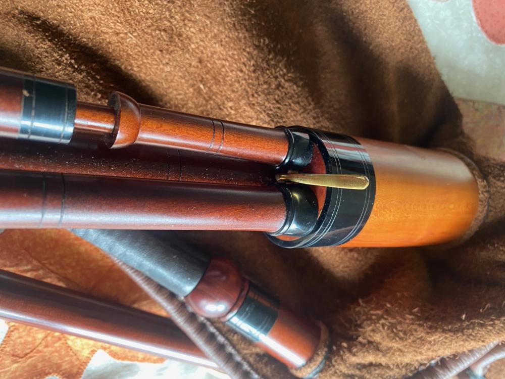 I have a set of Collin Ross Scottish Small pipes with a B flat chanter. The drones also TUNE TO AN ‘A’ CHANTER. These pipes have a fabulous well rounded mellow tone which befits a set made and sold in December 1989.