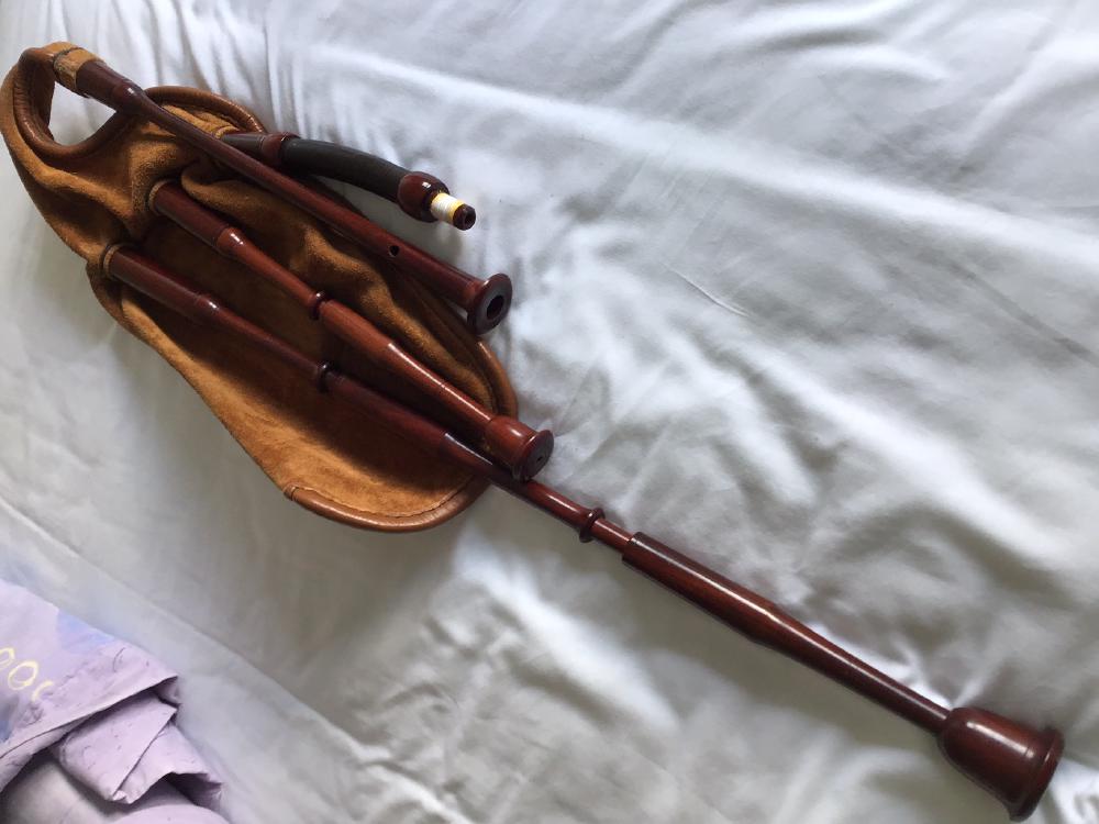 I have a set of Collin Ross Scottish Small pipes with a B flat chanter. The drones also TUNE TO AN ‘A’ CHANTER. These pipes have a fabulous well rounded mellow tone which befits a set made and sold in December 1989.