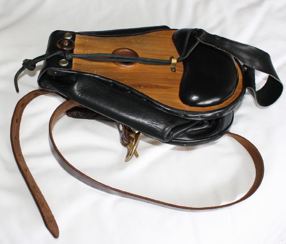 The base drone sits across the shoulder, tenor drone across the chest. Bright tone, beautiful colouring and a joy to play. Perfect condition. Straight untapering bellows connectors, compatible with bellows below.